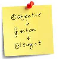 The methodology of OBJECTIVE -> ACTION -> BUDGET is logic, but why is it that so many marketers keep insisting on coming up with the budget before actually putting a plan in place? The “let’s copy last year’s budget” mentality is prevalent in many organizations because is the easy way out of a not so glamorous function. Maybe now is time for some change. So write “objective -> action -> budget” down on paper, in big letters and stick it to your corkboard or use a post-it and glue it to your computer monitor. That’s what I just did 🙂